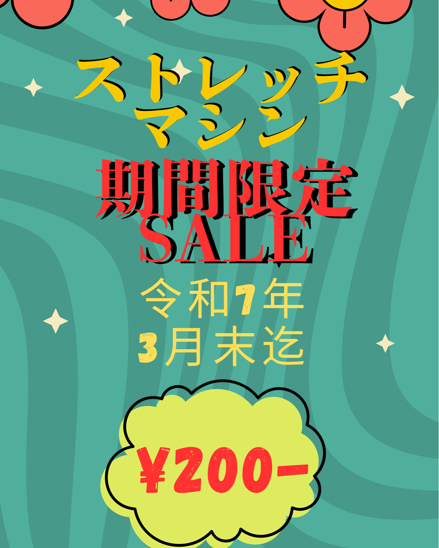 ストレッチマシン初回200円SALE 3月末迄!